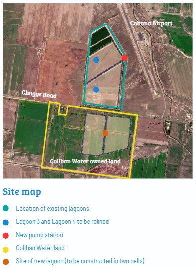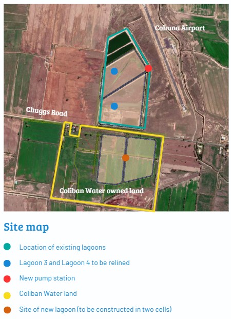 A new 15-hectare lagoon, in two cells, is planned for construction adjacent to the existing plant, on Coliban Water land south of Chuggs Road.